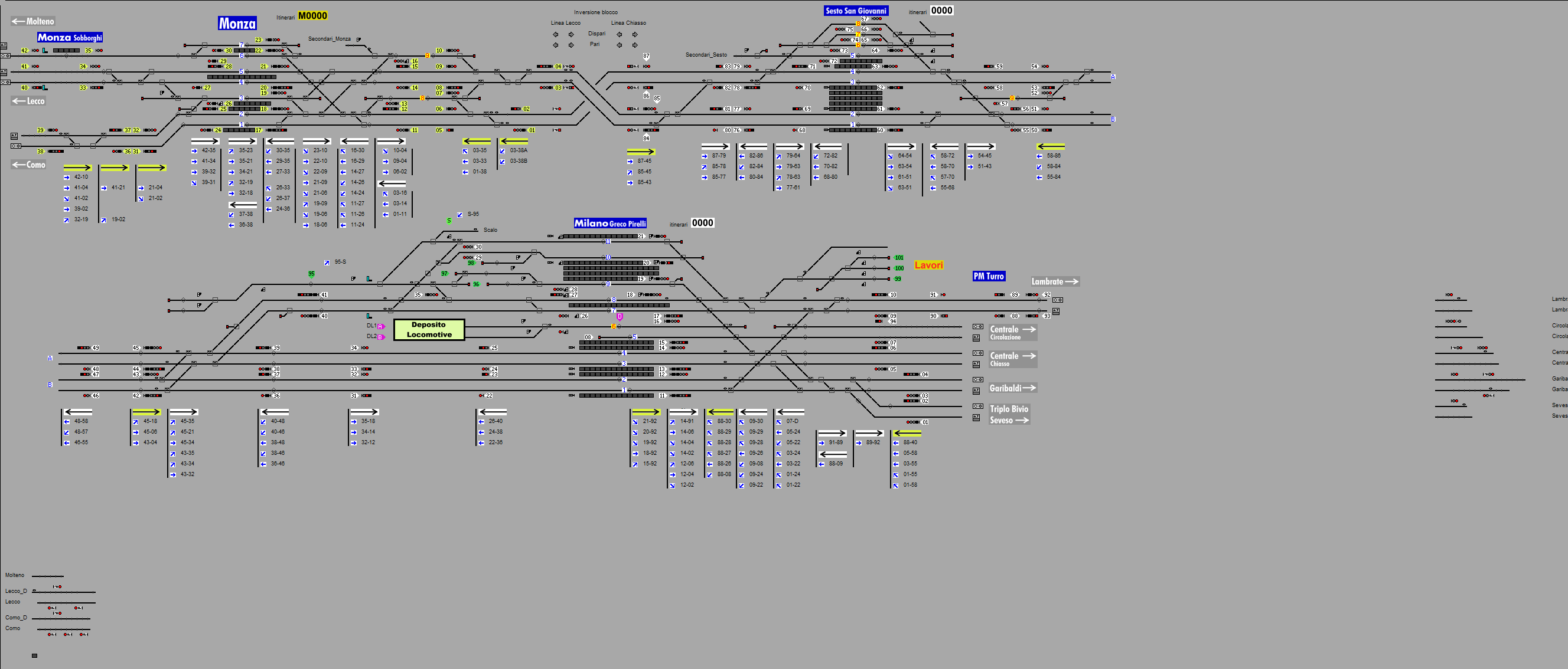 Data la complessità dello scenario, oltre ai pulsanti itinerario, è possibile utilizzare il tabulatore per la formazione degli itinerari (un ringraziamento a Luca Mazzucco per avermi concesso di copiare il suo). Il tabulatore è contenuto nel file .zip separato "tabnodonord.zip" che contiene anche le istruzioni su come attivarlo.