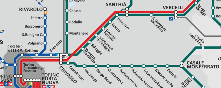 Chivasso - Ivrea - Aosta: traffico regionale da Ivrea a Torino (con invesione a Chivasso) e Ivrea - Novara.
