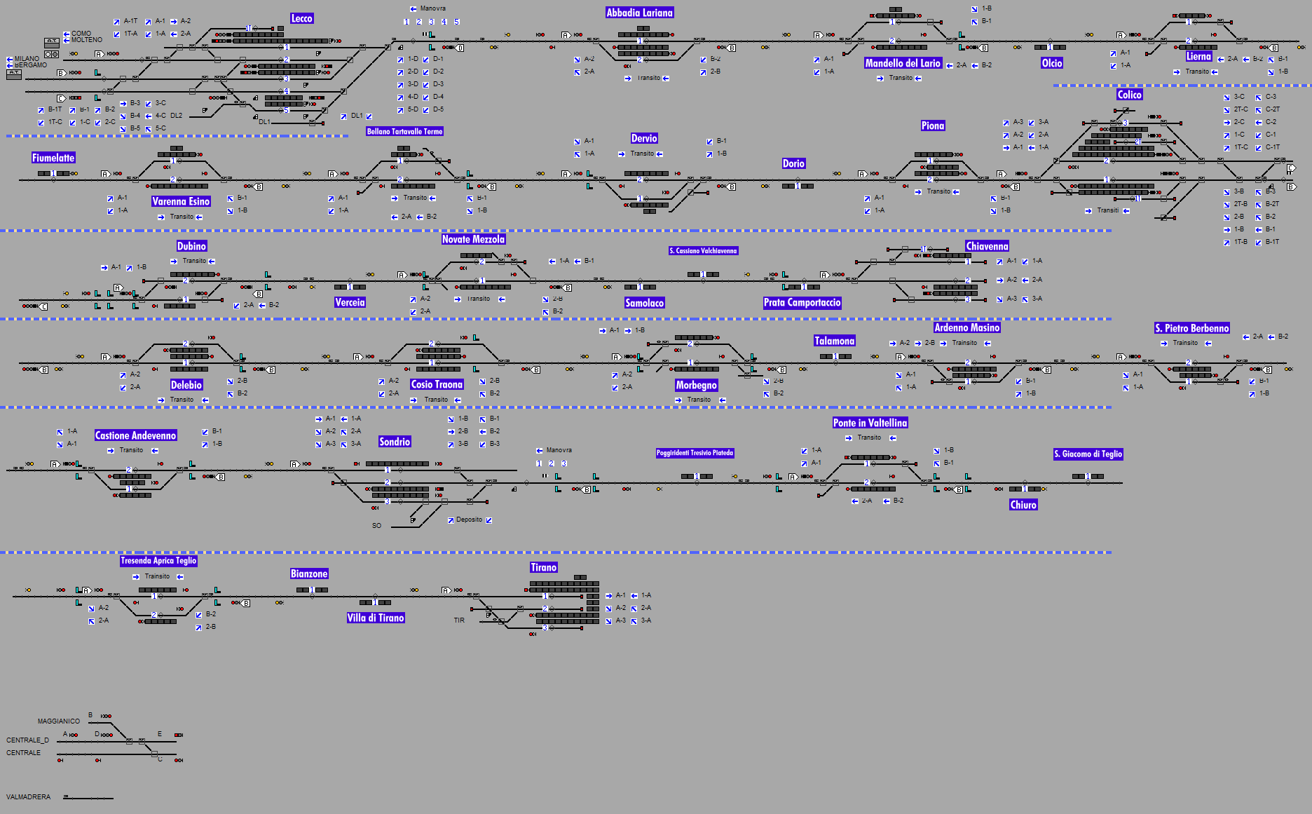 Lo scenario copre la linea della Valtellina, da Lecco, fino a Sondrio e Tirano, compresa la diramazione Colico-Chiavenna.
